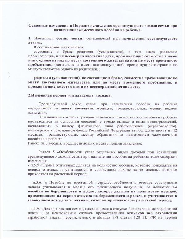 Основные изменения в Порядке исчисления среднедушевого дохода семьи при назначении ежемесячного пособия на ребенка