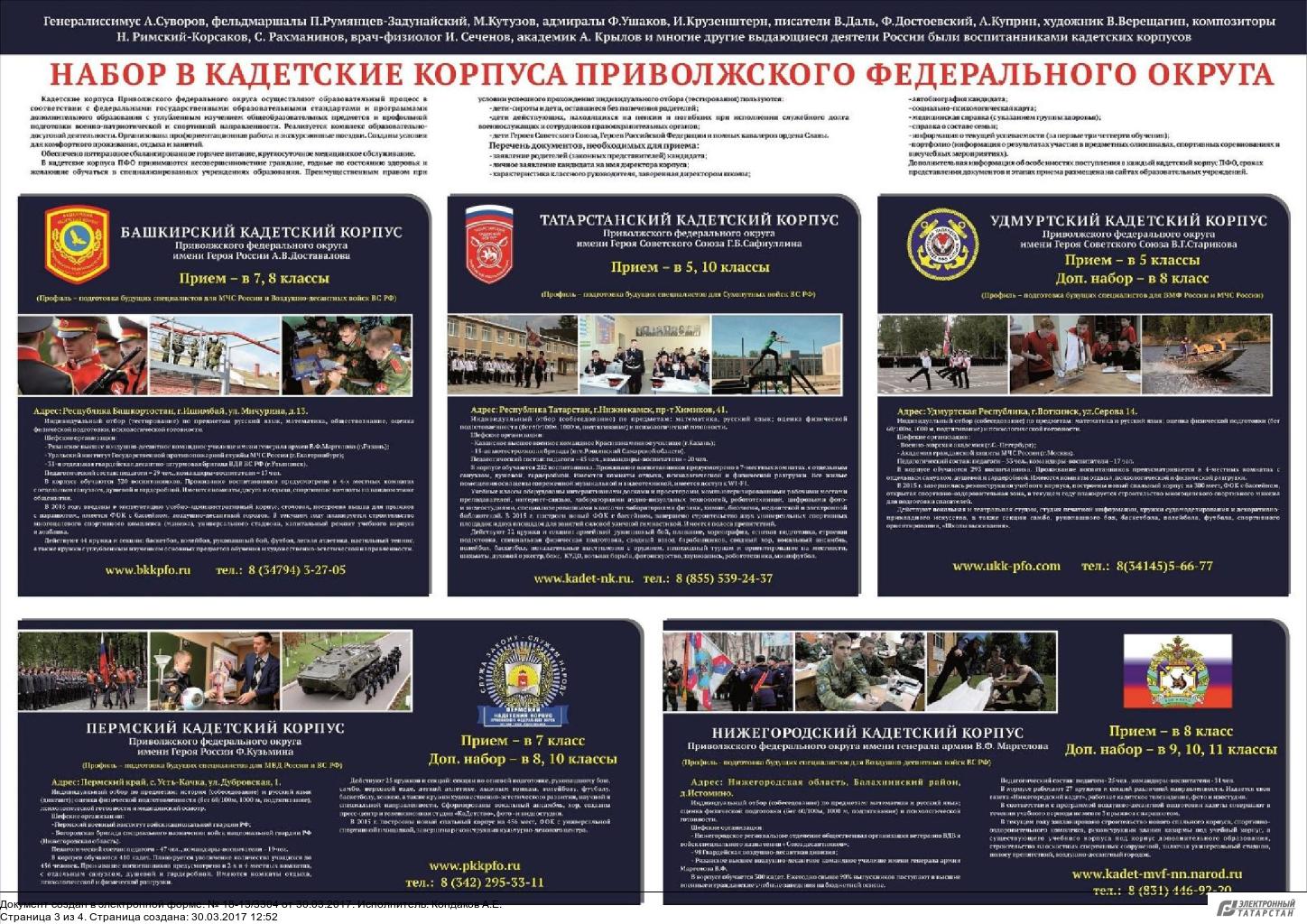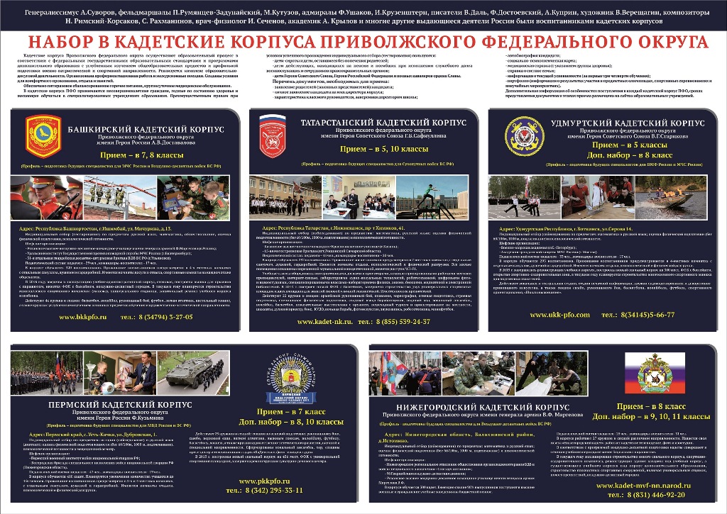 Набор в Кадетские корпуса Приволжского Федерального округа^