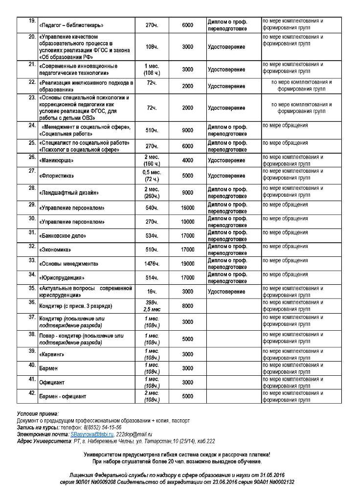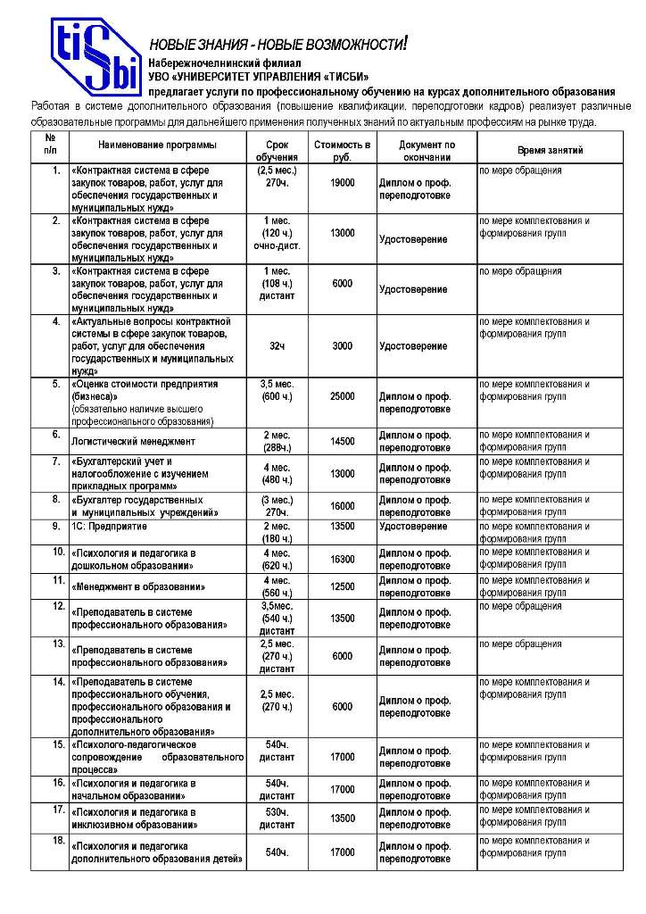 Курсы дополнительного образования