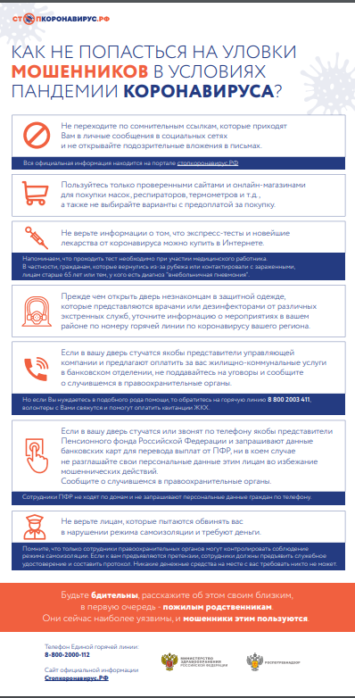 Об основных видах мошенничества, связанных с распространением коронавирусной инфекции