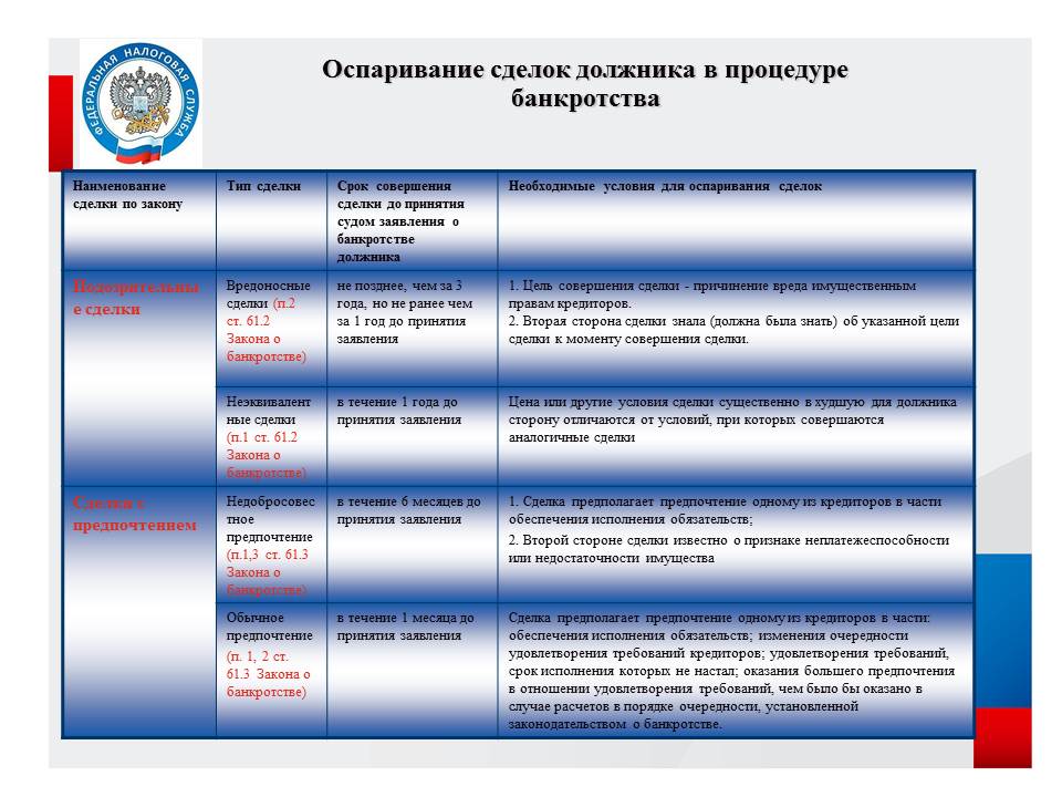 Оспаривание сделок должника в процедуре банкротства