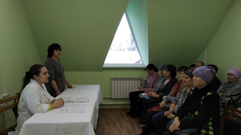 4 декабрь көнне Балтачның «Наз» халыкка социаль хезмәт күрсәтү үзәгендә «өлкәннәр һәм инвалидларны карау мәктәбе» инновация технологиясен тормышка ашыру кысаларында «Табибка кадәрге беренче ярдәм күрсәтү кагыйдәләре (стенокардия, инфаркт, гипертония кризисы)» темасына дүртенче дәрес узды.