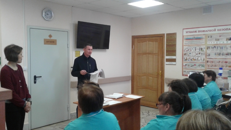 Директор урынбасары Фәния Йосыпова гражданнар оборонасы һәм гадәттән тыш хәлләрдән саклау өлкәсендә гражданнарның хокуклары һәм бурычлары турында сөйләде. Катнашучыларны янгын куркынычсызлыгы кагыйдәләрен белүне тикшерү буенча үткәрелгән тест нәтиҗәләре белән таныштырды. Хезмәткәрләргә социаль хезмәт алучыларның язгы ташуга каршы чараларны дәвам итүе турында искә төшерде.