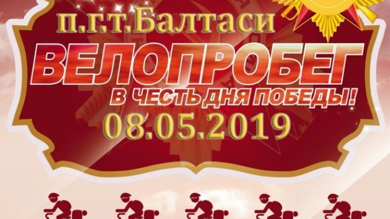 2019 елның 8 маенда Балтач шәһәр тибындагы поселогында 19.00 сәгатьтә Бөек Ватан сугышында Җиңүнең 74 еллыгына багышланган велоузыш узачак. Җыелу урыны 18.00 сәгатьтә "Дан Аллеясы" Җиңү паркы каршында. Барлык катнашырга теләүчеләрне дә чакырабыз.