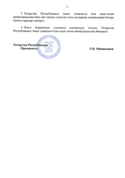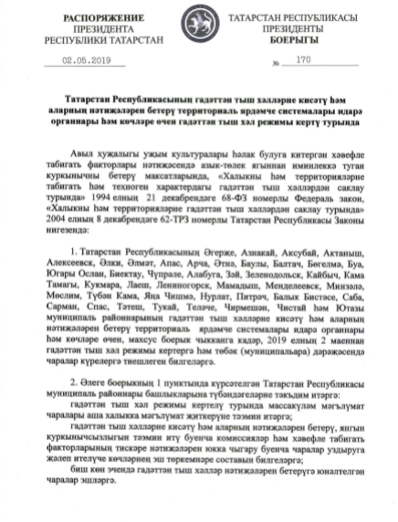 Гадәттән тыш хәл режимын кертү турында Татарстан Республикасы Президенты боерыгы