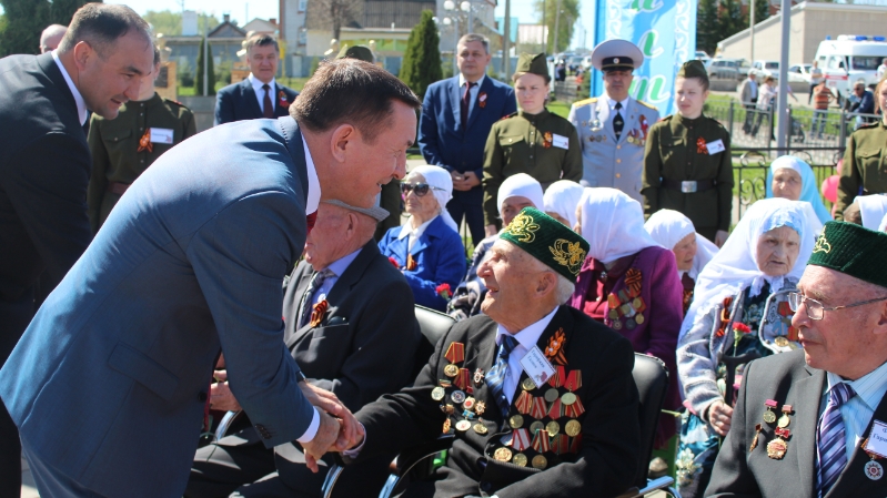 «Бүген без һәлак булган каһарман сугышчыларның якты истәлегенә баш иябез, арабызда яшәүче фронтовикларга һәм тыл хезмәтчәннәренә тиешенчә олылау һәм зурлау күрсәтәбез. Хөрмәтле ветераннар, батыр, хезмәт сөючән, зирәк булганыгыз, республикабыз тормышында актив катнашуыгыз өчен сезгә бик зур рәхмәт! Озын гомерле булыгыз!