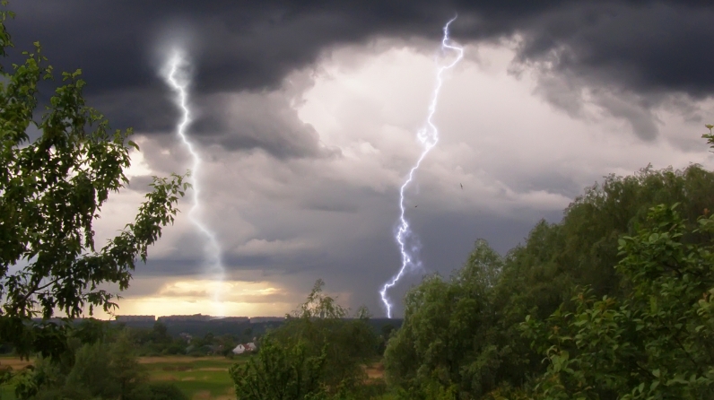 Урыны белән кыска вакытлы яңгыр, яшен.