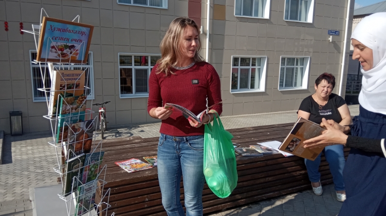 Балтач үзәк китапханәсе хезмәткәрләре 8 нче август көнне “Балтач” ял паркында “Китап мөхите” проекты кысаларында райондашларыбызга “Хуҗабикәләр, сезнең өчен!” исеме астында кышлыкка тозлау һәм кайнатмалар әзерләү өчен киңәшләр тупланган китап күргәзмәсе тәкъдим иттеләр.
