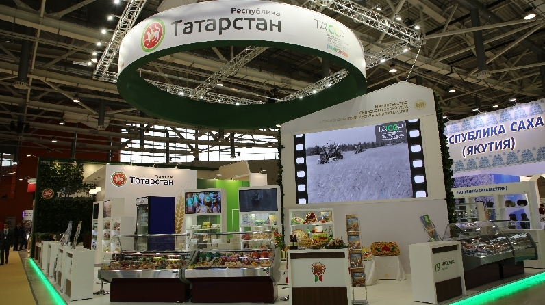 Татарстан  Республикасы Авыл хуҗалыгы  һәм азык-төлек  министрлыгы үз  стендында Татарстанда  җитештерелгән  экологик  чиста һәм натураль продукция  күрсәтә.