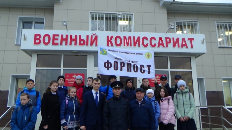 2019 елның 18 октябрендә 14:00 сәгатьтә Балтач «Форпост» үзәге директоры Ф.Ш. Гилемҗанов Балтач гимназиясенең 8» Б «сыйныф укучылары белән Татарстан Республикасы Балтач районы буенча Россия хәрби комиссариатына экскурсия оештырды. Чара барышында хәрби хезмәткәрләрнең тарихы белән танышу һәм һөнәр сайлау турында әңгәмә үткәрелде.