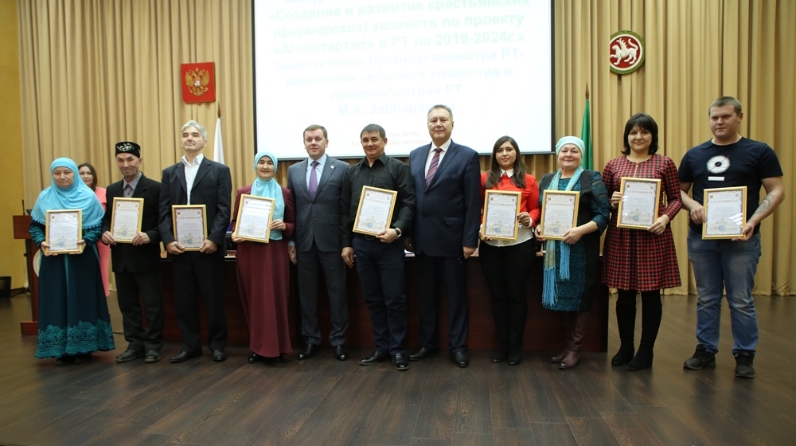 Бүген  Татарстан  Республикасы Авыл хуҗалыгы  һәм азык-төлек  министрлыгында  «Агростартап» гранты ярдәме конкурсында    катнашучыларга  сертификатлар  тапшырылды.   Грантларның  гомуми  суммасы    313 млн. сум  тәшкил  итә.   Татарстанның 36 муниципаль   районыннан  конкурста  катнашуга  теләк  белдергән   132 крестьян (фермер) хуҗалыгыннан    103 КФХ 2 млн сумнан  4  млн  сумга  кадәр  күләмдә  грантлар  алдылар.   Иң күп җиңүчеләр  Мамадыш  районыннан булды    (8 фермер), Азнакай  һәм Тәтеш  районнарыннан    (6 шар фермер), Кукмара,  Саба  һәм   Нурлат районнарыннан  5әр фермер  җиңүче  булды.
