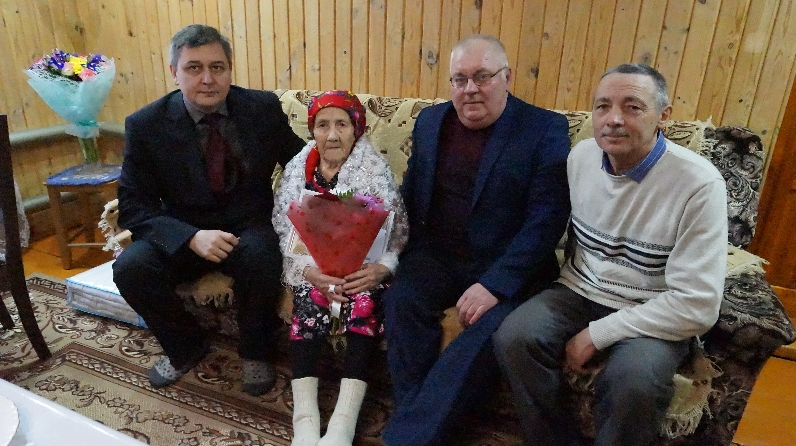 Юбилярга Россия Федерациясе Президенты Владимир Путинның котлау открыткасын, Балтач муниципаль район башлыгы исеменнән Рәхмәт хаты һәм кыйммәтле бүләк, соңгы эш урыны һәм авыл җирлеге исеменнән бүләкләр тапшырдылар.