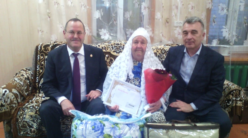 Юбилярга Россия Федерациясе Президенты Владимир Путинның котлау открыткасын, Балтач муниципаль район башлыгы исеменнән Рәхмәт хаты һәм кыйммәтле бүләк, соңгы эш урыны һәм авыл җирлеге исеменнән бүләкләр тапшырдылар.