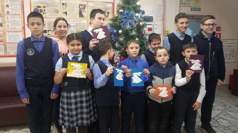 Бүлек белгечләре балалар өчен уен формасында фикерләү сәләтләрен һәм кулларның вак моторикасын үстерү буенча күнегүләр үткәрделәр. Балалар үз куллары белән чыршы уенчыклары һәм «Күңелле куян» открыткалары ясадылар. Һәр бала үз фантазиясен коллективта эшләү аша тормышка ашыра алды.