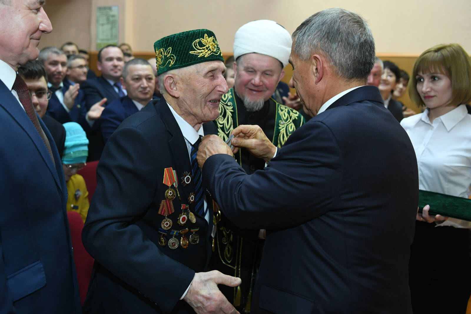 Азакта Рөстәм Миңнеханов дәүләт бүләкләрен тапшырды. РФ Президенты Указы нигезендә күрсәткән батырлыгы һәм Бөек Ватан сугышында Җиңүгә керткән өлеше өчен Бөек Ватан сугышы ветераны, Чепья авылындагы «Халыклар дуслыгы» туган як музее директоры Гарифҗан Гали улы Галиев «1941-1945 еллар Бөек Ватан сугышында Җиңүнең 75 еллыгы» юбилей медале белән бүләкләнде.