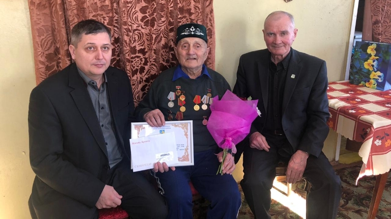 Юбилярга Россия Федерациясе Президенты Владимир Путинның котлау открыткасын, Балтач муниципаль район башлыгы исеменнән Рәхмәт хаты һәм кыйммәтле бүләк, сонгы эш урыны, авыл җирлеге исеменнәндә бүләк - күчтәнәчләр тапшырдылар.
