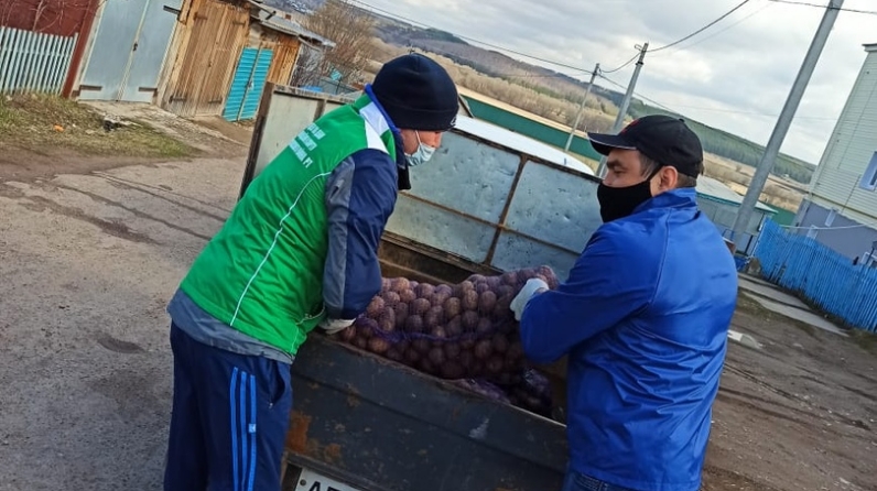«БезБергә» акциясе кысаларында «Татарстан» АХҖК ҖЧҖ җитәкчесе Айнур Нотфуллин районның ялгыз яшәүче кешеләренә: Гөлнур Галиева, Фирдәүс Мөкминова, Юныс Сибгатуллинга, тыл хезмәтчәне Бибинур Хәлиловага һәм коляскадагы инвалид Фәнис Сөләймановка ярдәм йөзеннән бәрәңге тапшырды. Бәрәңгедән тыш, Юныс Сибгатуллин шәхси эшмәкәр Рәсимә Сәгыйтовадан азык-төлек пакеты алды.