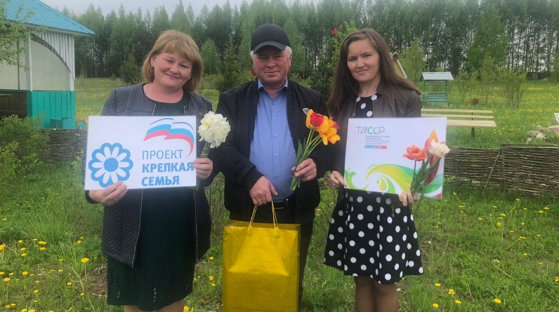 Халыкара гаилә көне уңаеннан Сидоровлар гаиләсенә коллектив исеменнән чәчәкләр һәм истәлекле бүләк тапшырылды.