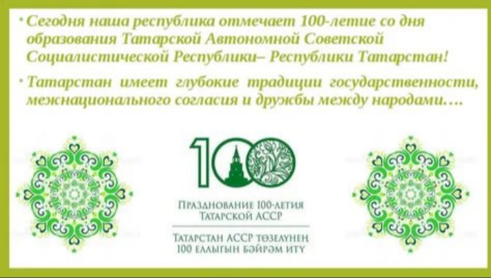 1920 елның 27 маенда, нәкъ 100 ел элек бу көнне, ТАССР оешу турында Халык Комиссарлары Советы Рәисе В.И. Ленин, Бөтенроссия Үзәк Башкарма комитеты рәисе М.И. Калинин имзалаган Декрет бастырыла, Декретның беренче параграфында: «Автономияле Татар Социалистик Республикасын РСФСР бер өлеше буларак оештырырга...» - диелә.