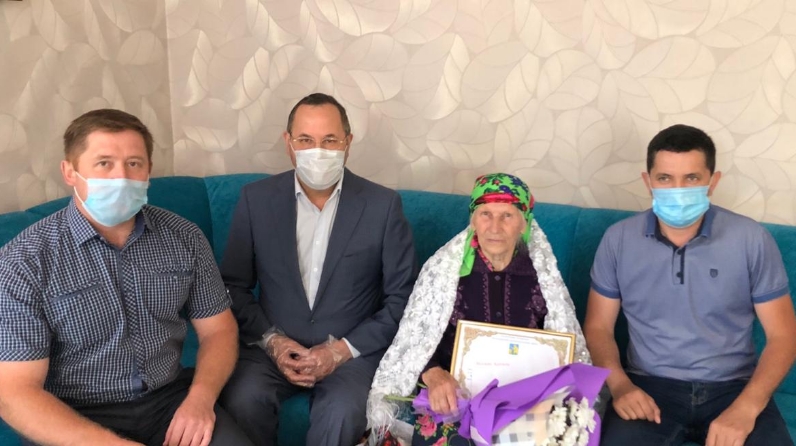 Юбилярга Россия Федерациясе Президенты Владимир Путинның котлау открыткасын, Балтач муниципаль район башлыгы исеменнән Рәхмәт хаты һәм кыйммәтле бүләк, соңгы эш урыны һәм авыл җирлеге исеменнән бүләкләр тапшырдылар.