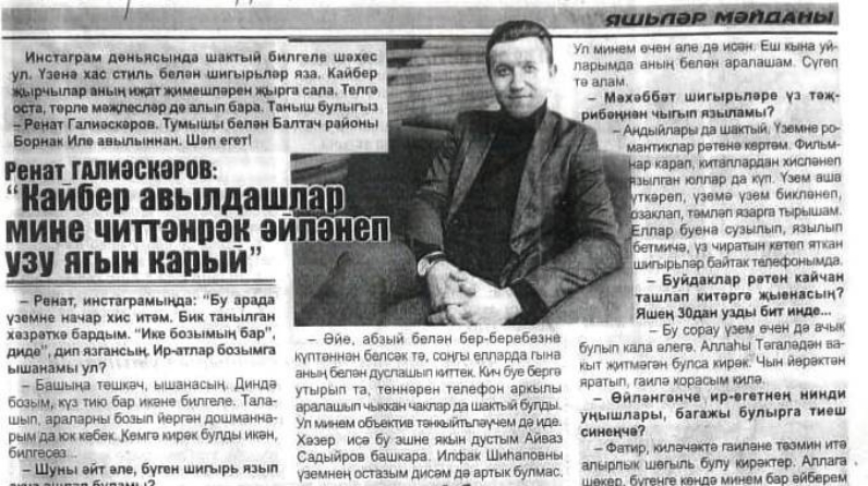 Нәзилә Хуҗина. "Ренат Галиәскаров: Кайбер авылдашлар мине читтәнрәк әйләнеп узу ягын карый" Акчарлак №25, 25.06.2020 ел.