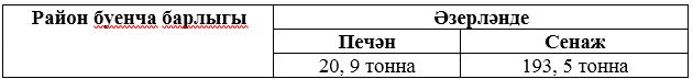 Район авыл хуҗалыгы һәм азык-төлек идарәсеннән алынган мәгълүматлардан күренгәнчә, 24 июль көненә берьеллык үләннәр мәйданының 8728 гектары чабылган, шуның 8038 гектары җыеп алынган. «Сорнай» хуҗалыгы -14167, «Татарстан» – 11153, «Дуслык» – 12476, Тимирязев исемендәге хуҗалык – 12831, «Бөрбаш» - 12114, «Сосна» - 12464, «Якты юл» - 11340, «Кама» – 11430, «Активист» - 11297 тонна сенаж салдылар.