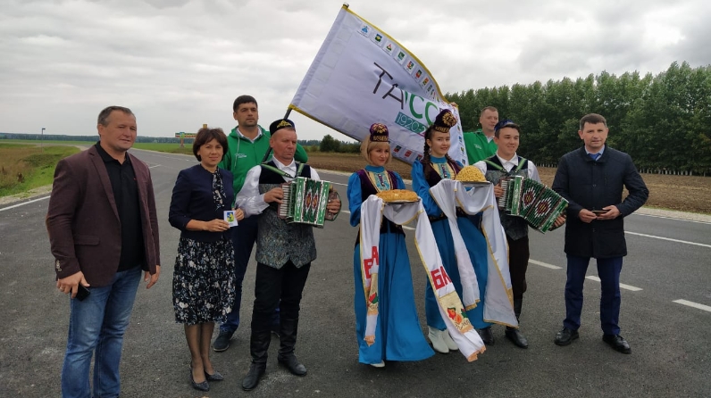 Кунакларны безнең район вәкилләре ике район чигендә милли музыка астында икмәк һәм тоз белән каршы алды. Район үзәгенә кадәр Татарстан флагын алып бару хөрмәтенә Тимирязев исемендәге ҖЧҖ комбайнчылары, ГАЗ-69 һәм ГАЗ-21 автомобильләрен йөртүчеләр, мотоциклчылар, картинг буенча республика ярышларында катнашучылар лаек булды. Балтачка кергәч, бизәлгән атта флаг лыжероллерлы спортчыларга һәм 2019 елгы Россия чемпионнарына тапшырылды, алар үз чиратында "Геройлар аллеясы" Мемориаль комплексына кадәр байракны җиткерделәр. Монда тантаналы чара узды. Балтач муниципаль районы башлыгы Рамил Рәшит улы Нотфуллин якташларын истәлекле вакыйга белән котлады һәм горурлык белән Балтач районы гербын флагка беркетте.