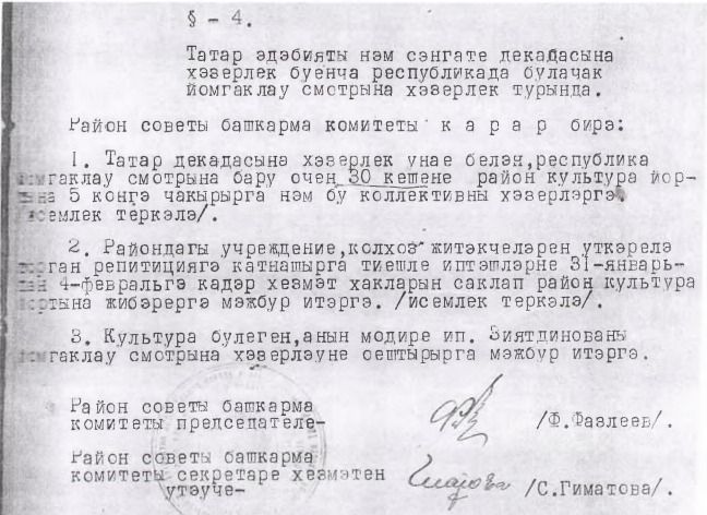 Хезмәт ияләре депутатларының Балтач район Советы башкарма комитетының 1956 нче елның 31 январеннән 6 нчы номерлы утырышы беркетмәсеннән өземтә