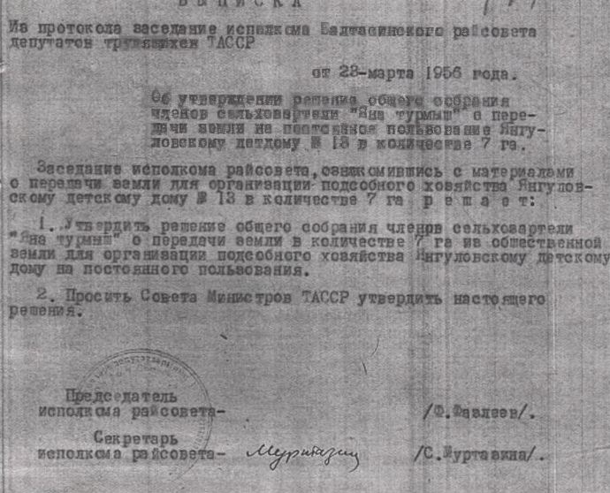Башкарма комитет хезмәт ияләре депутатларының Балтач район Советы утырышы беркетмәсеннән 23.03.1956 ел, №12 өземтә