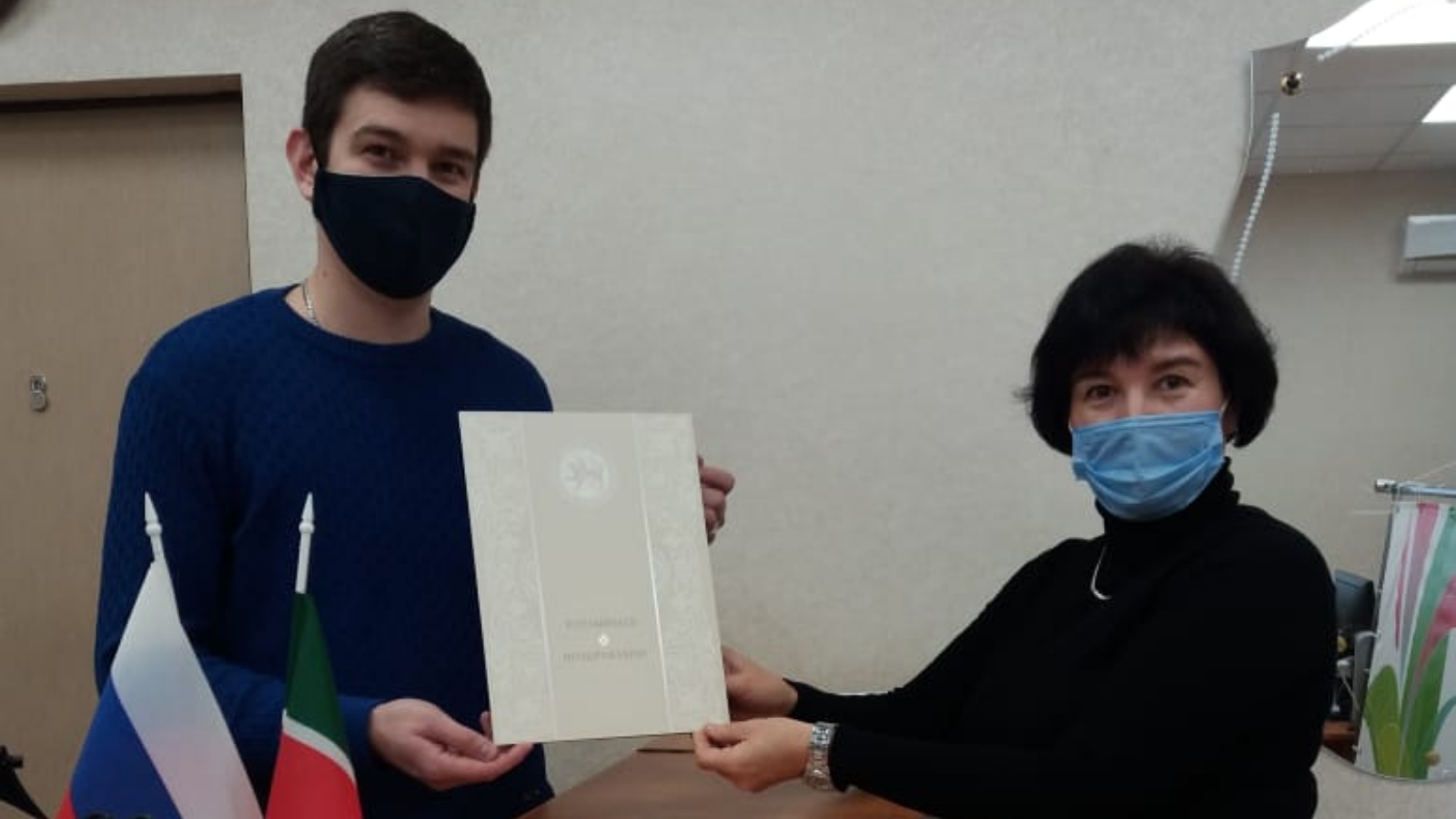 ГХАТ бүлеге белгечләре бәхетле ата–ананы шатлыклы вакыйга белән котладылар, уллары тормышында беренче һәм иң төп документ - туу турында таныклык бирделәр, шулай ук котлау открыткасы тапшырдылар.