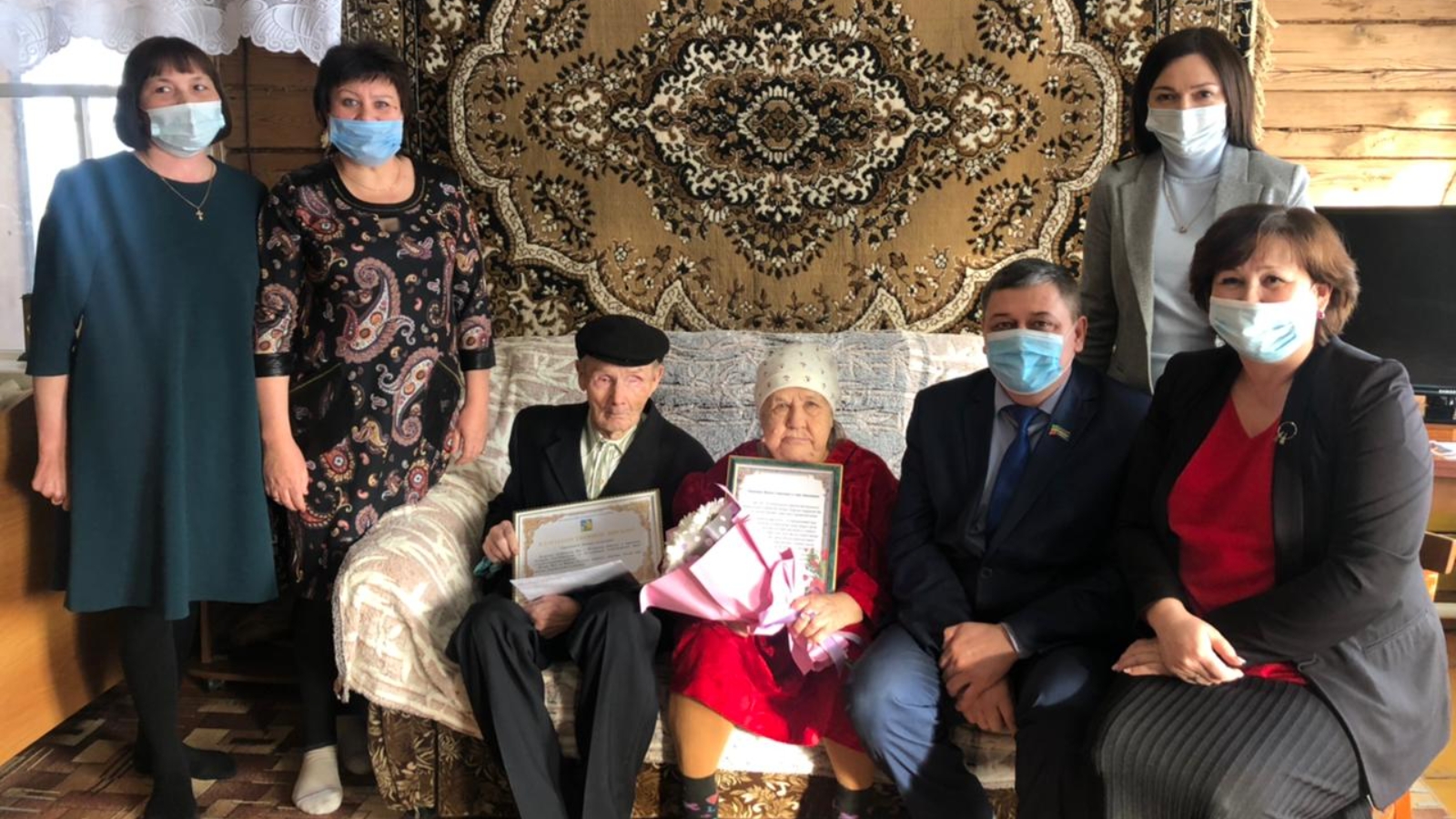 Юбилярга Россия Федерациясе Президенты Владимир Путинның котлау открыткасын, Балтач муниципаль район башлыгы исеменнән Рәхмәт хаты һәм кыйммәтле бүләк, соңгы эш урыны һәм авыл җирлеге исеменнән бүләкләр тапшырдылар.