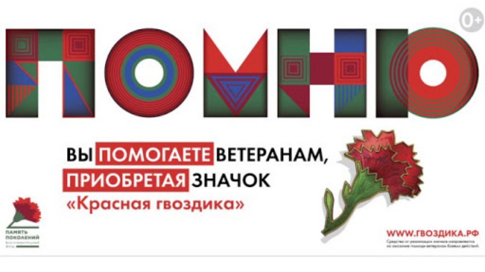Ел саен Фонд «Красная гвоздика» бөтенроссия акциясен үткәрә. Акция чорында илнең һәр кешесе «Красная гвоздика» значогын онлайн, популяр сәүдә челтәрләре кибетләрендә, Россия почтасы бүлекләрендә алып яки иганә өчен волонтерлардан алып, ветераннарга ярдәм итүгә үз өлешен кертә ала. Значокларны сатудан җыелган акчалар ветераннарга ярдәм күрсәтүгә җибәрелә. «Красная гвоздика» - значок кына түгел, ул илебезнең хәзер яшәүче һәм батырларча һәлак булган ветераннарына рәхмәт символы.
