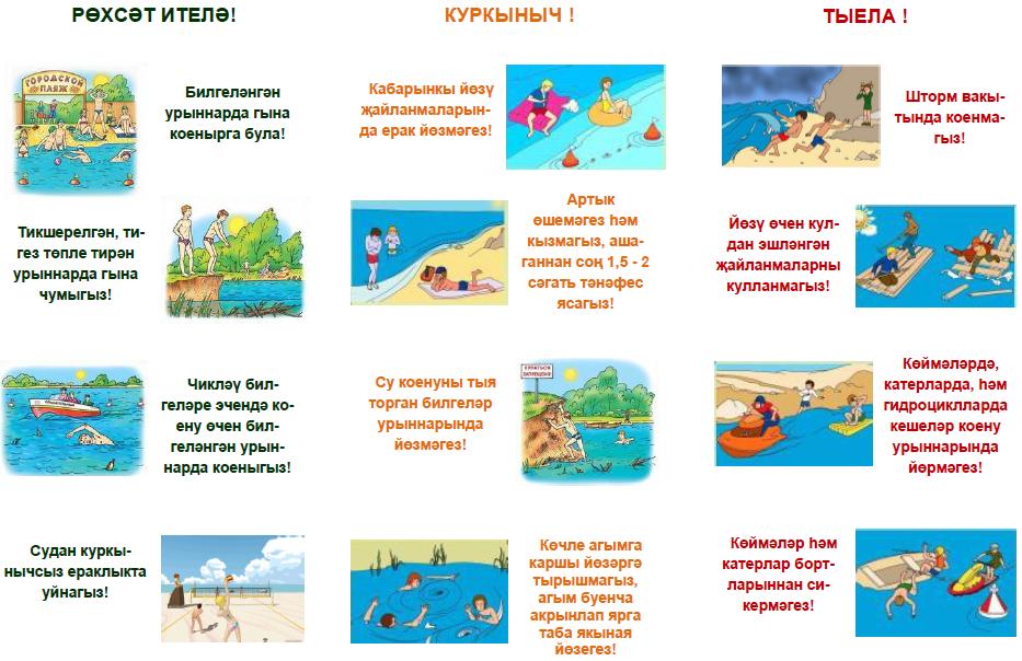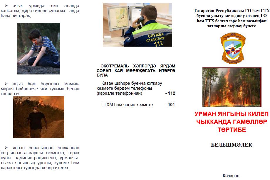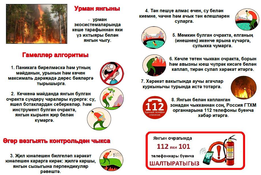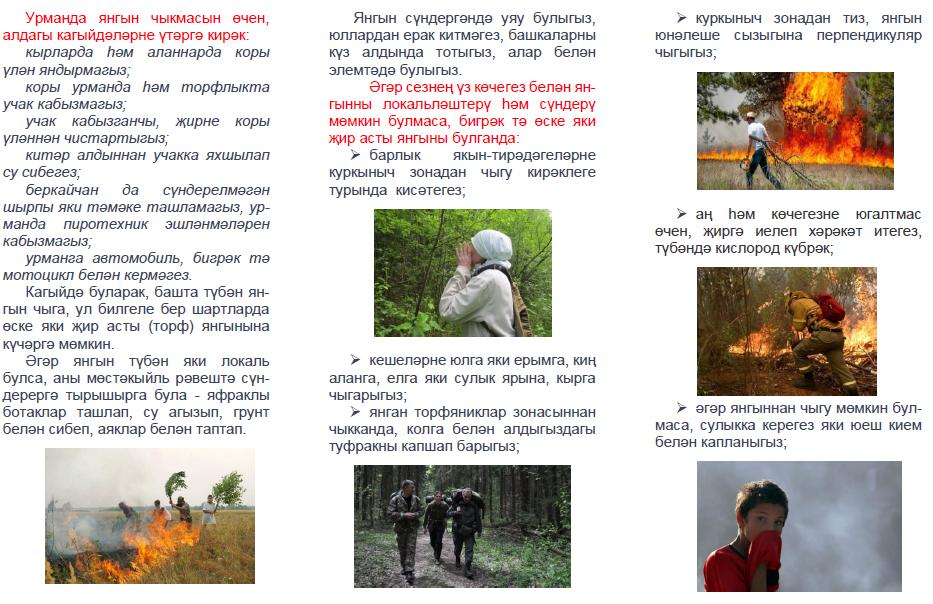 Урманда янгын килеп чыкканда һәм суда үз-үзеңне тоту кагыйдәләре буенча белешмәлекләр