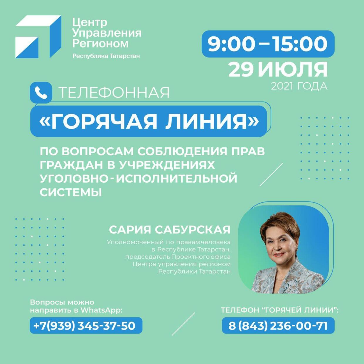 2021 елның 29 июлендә Татарстан Республикасында Кеше хокуклары буенча вәкаләтле вәкил мөмкинлекләре чикләнгән гражданнарның хокукларын яклау мәсьәләләре буенча «кайнар линия» үткәрә.
