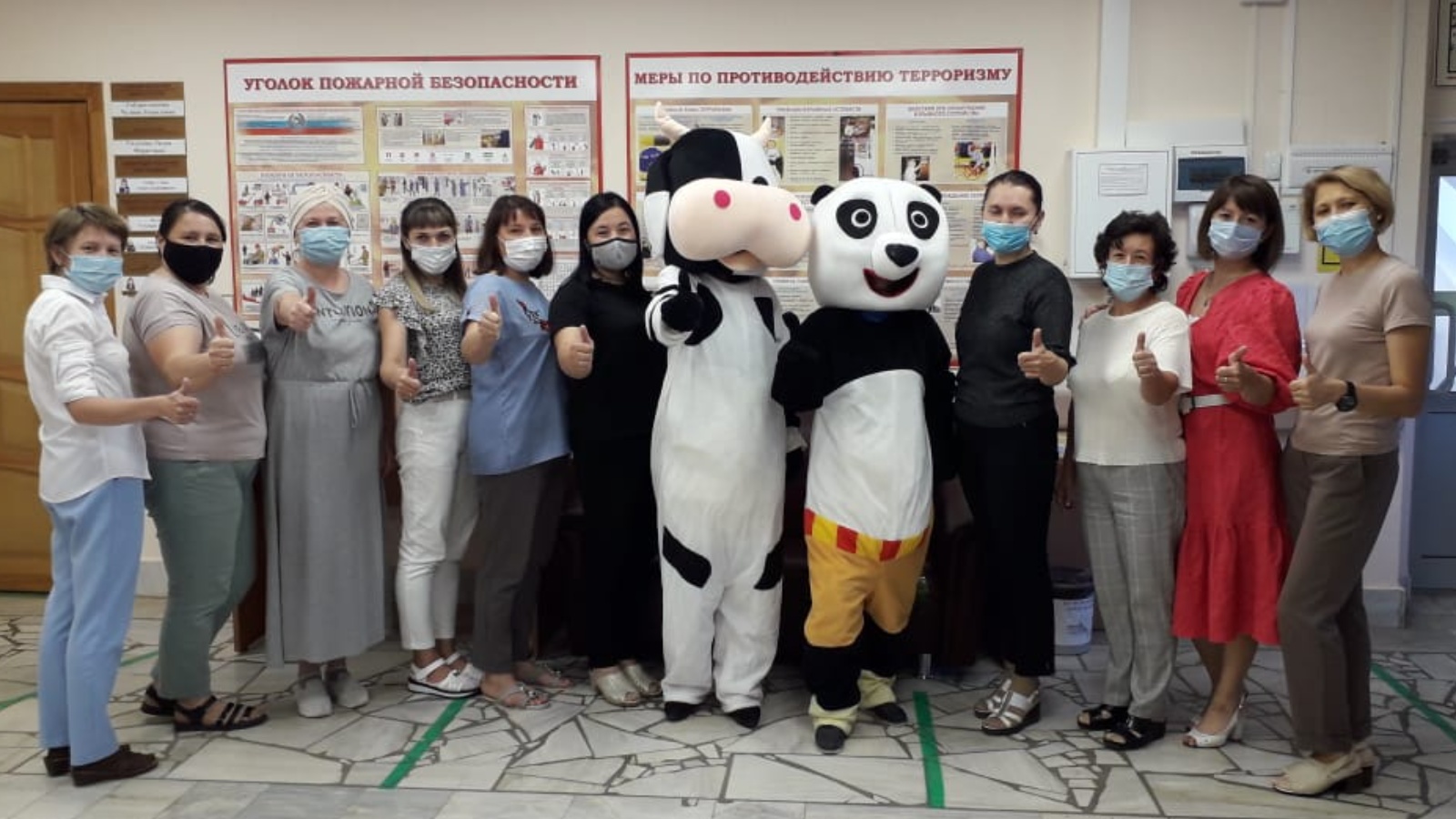 Буйлы курчаклар костюмнарындагы белгечләр мускулларны йомшарту һәм кан әйләнешен яхшырту өчен берничә күнегү әзерләгән иде. Хезмәткәрләр мондый акцияләрнең мөһимлеген искәртеп, алардан соң эшкә сәләтлелек һәм эш сыйфаты яхшыруын билгеләп үттеләр.