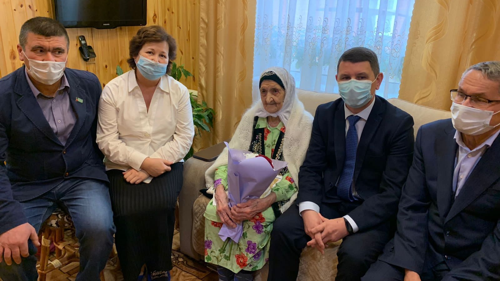 Район җитәкчелеге юбилярга Россия Федерациясе Президенты Владимир Путинның котлау открыткасын, Балтач муниципаль район башлыгы исеменнән Рәхмәт хаты һәм бүләк, социаль яклау бүлеге, соңгы эш урыны һәм авыл җирлеге исеменнән бүләк-күчтәнәчләр тапшырдылар.