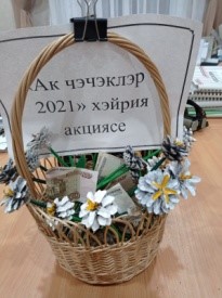 Республикакүләм старт алган "Ак чәчәкләр" хәйрия акциясенә районыбызның мәдәният йортлары хезмәткәрләре дә бик теләп кушылдылар. Ак чәчәк - шәфкатьлелек, мәхәббәт, игелек, чисталык һәм өмет символы. Акция кысаларында мәдәният үзәкләрендә эшләп килүче түгәрәкләрдә балалар белән берлектә мастер-класслар үткәрелде, алар матур ак чәчәкләр ясадылар. Аннан бу чәчәкләрне сату ярминкәләре оештырылды. Хәйрия акциясе барышында барлыгы 45 мең 535 сум акча җыелды. Сатудан кергән акчалар авыл җирлекләрендә сәламәтлеге, физик мөмкинлеге чикле балалар тәрбияләүче гаиләләргә тапшырылды.