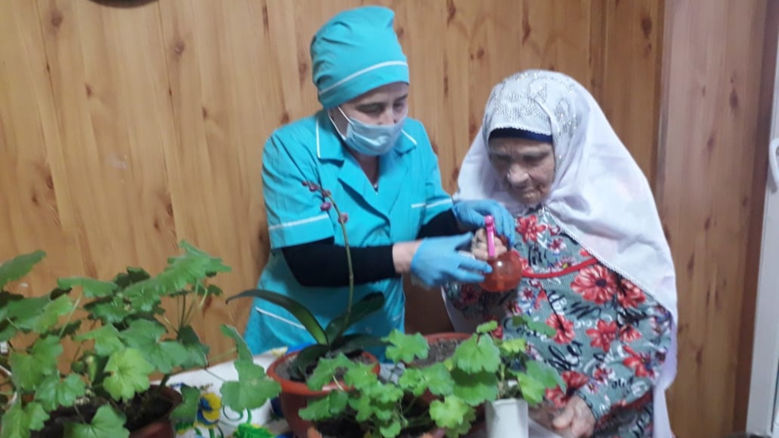 Социаль хезмәткәр Тәслимә Хәсәнова үзенең карамагында булган өлкән кешеләрне чәчәкләр, суган үстерү белән кызыктырырга тырыша. Хезмәт нәтиҗәләрен күреп, социаль карамактагы өлкән яшьтәге кешеләр горурлык һәм шатлык хисләре кичерәләр. Чәчәкләр белән эшләү өлкән кешеләрнең гамәли күнекмәләрен үстерә, психоэмоциональ халәтен яхшырта.