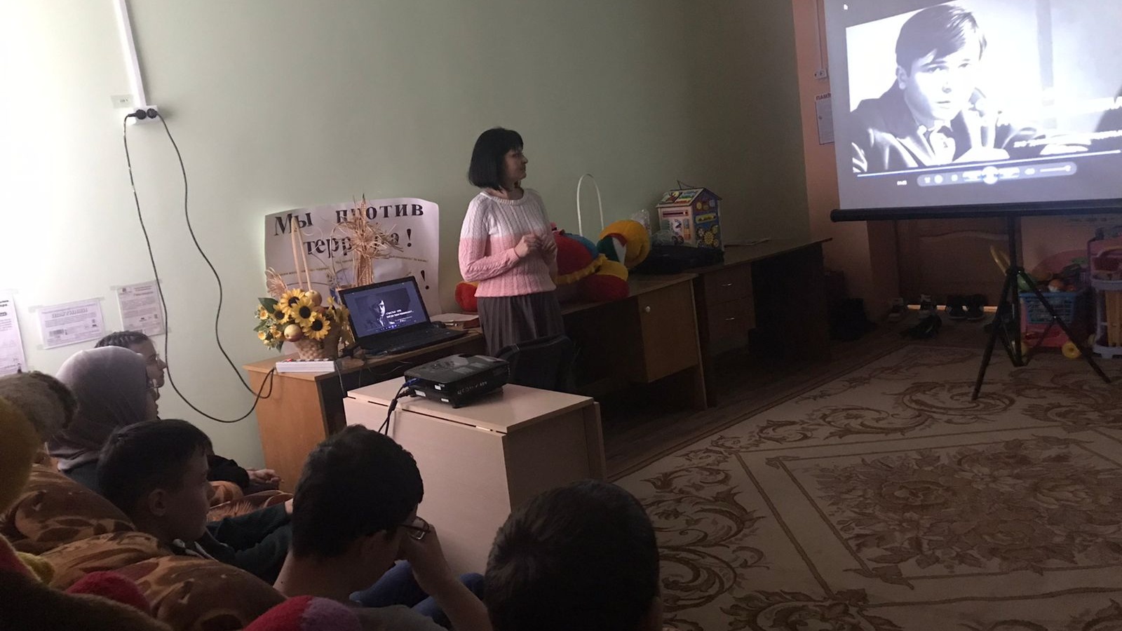«Көзге мәрхәмәтлек атнасы» акциясы кысаларында социаль педагог Олеся Хәмидуллина «Бер-берсенә каршы» толерантлык дәресе уздырды. Чара барышында катнашучылар педагог тарафыннан үрнәк итеп китерелгән төрле хәлләр турында фикер алыштылар. Викторинада тематик әкиятләр һәм хикәяләр турында фикер алыштылар. Шулай ук балалар «Толерантлык нәрсә ул?» видеосын һәм «Толерантлык мөнәсәбәте» мультфильмын карадылар. Дәрес ахырында балалар физкультминутка эшлэдлэр.