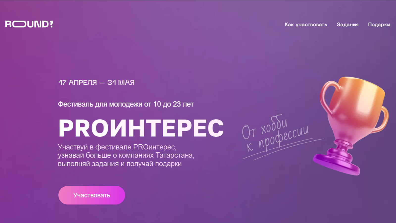 PROинтерес-Татарстан Республикасы Хөкүмәте ярдәме белән Round кушымтасы базасында яшьләр өчен ел саен үсештә булган һөнәри юнәлеш бирү фестивале.