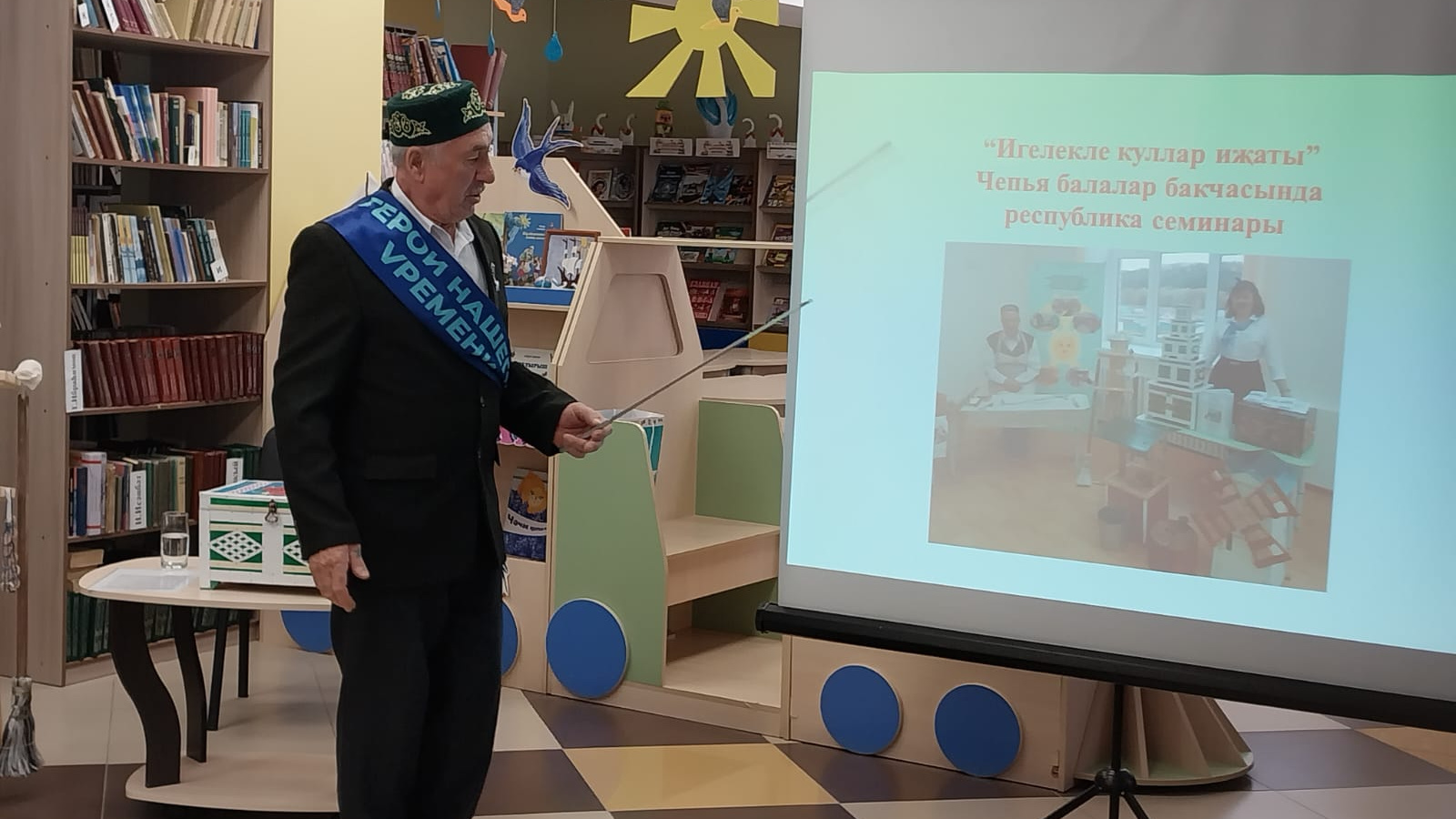 27 апрель көнне Балтач Үзәк балалар китапханәсендә якташыбыз, ветеран укытучы, оста куллы, изге күңелле, тыңгысыз йөрәкле шәхес, 2022 елда “Безнең заман герое” исеменә лаек булган Хәсәншин Госман Гомәр улы белән очрашу кичәсе үтте.