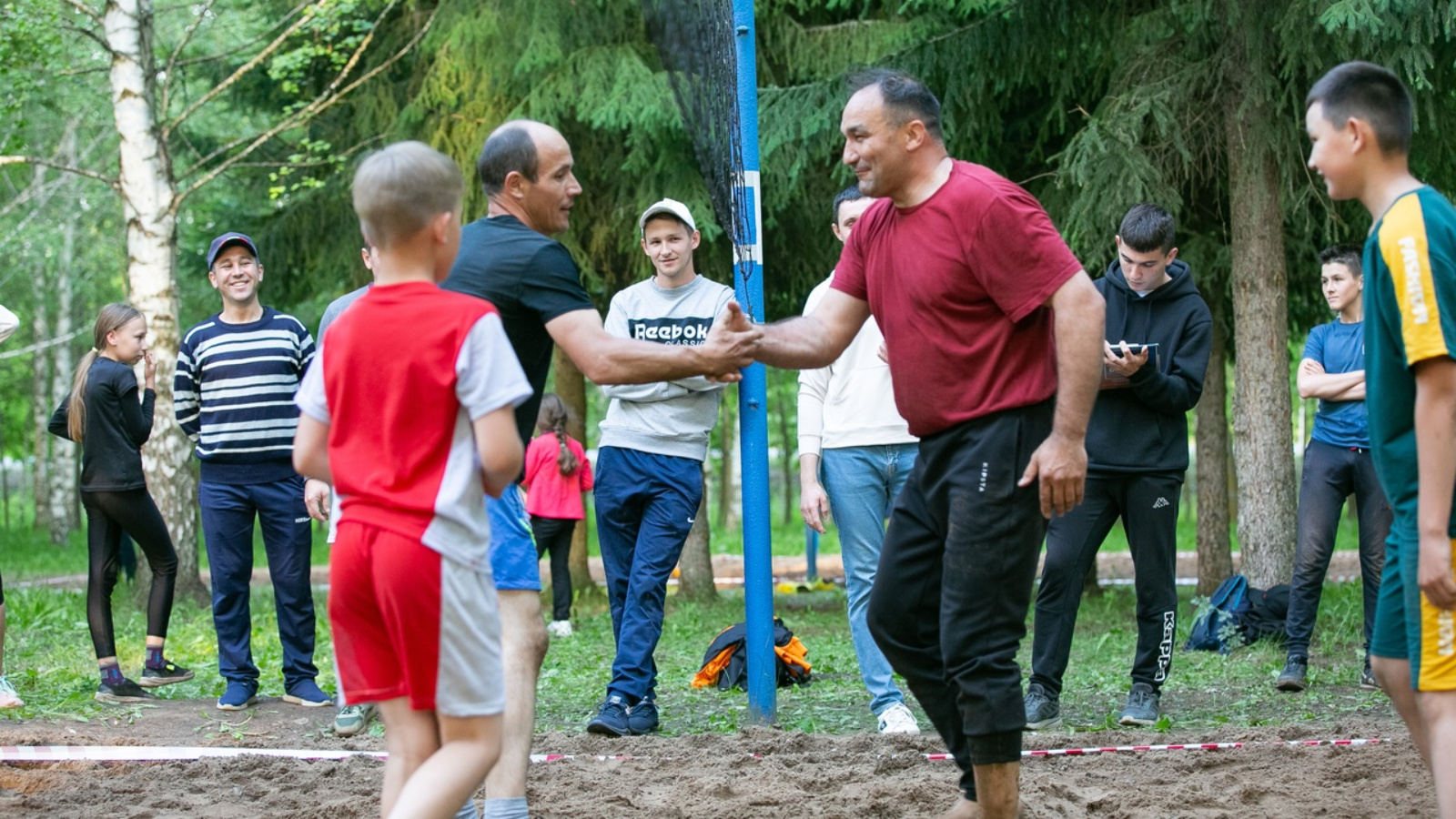 Проектның икенче этабы 30 нчы май көнне “Сабантуй” ял паркында үтте. Биредә тулы көченә өч мәйданчык эшләде. Беренче мәйданчыкта әти-әниләр һәм балалар пляж волейболы уйнады. Аның шарты түбәндәгечә иде: уенда катнашу өчен бер үк гаиләдәге әти яки әни һәм бала, ягъни ике кеше бер команда булдыра һәм ком өстендә каршы як командага каршы волейбол уйный. Катнашучылар арасында дәрәҗәле кунаклардан Балтач районы башкарма комитет җитәкчесе Хәйретдинов Айдар Фоат улы һәм Яшьләр эшләре һәм спорт бүлеге җитәкчесе Заһидуллин Рөстәм Рафис улы да бар иде. Катнашучылар, гаиләләре белән килеп, үз вакытларын “Факел”лар белән берлектә онытылмаслык итеп уздыру мөмкинлегенә ия булды.