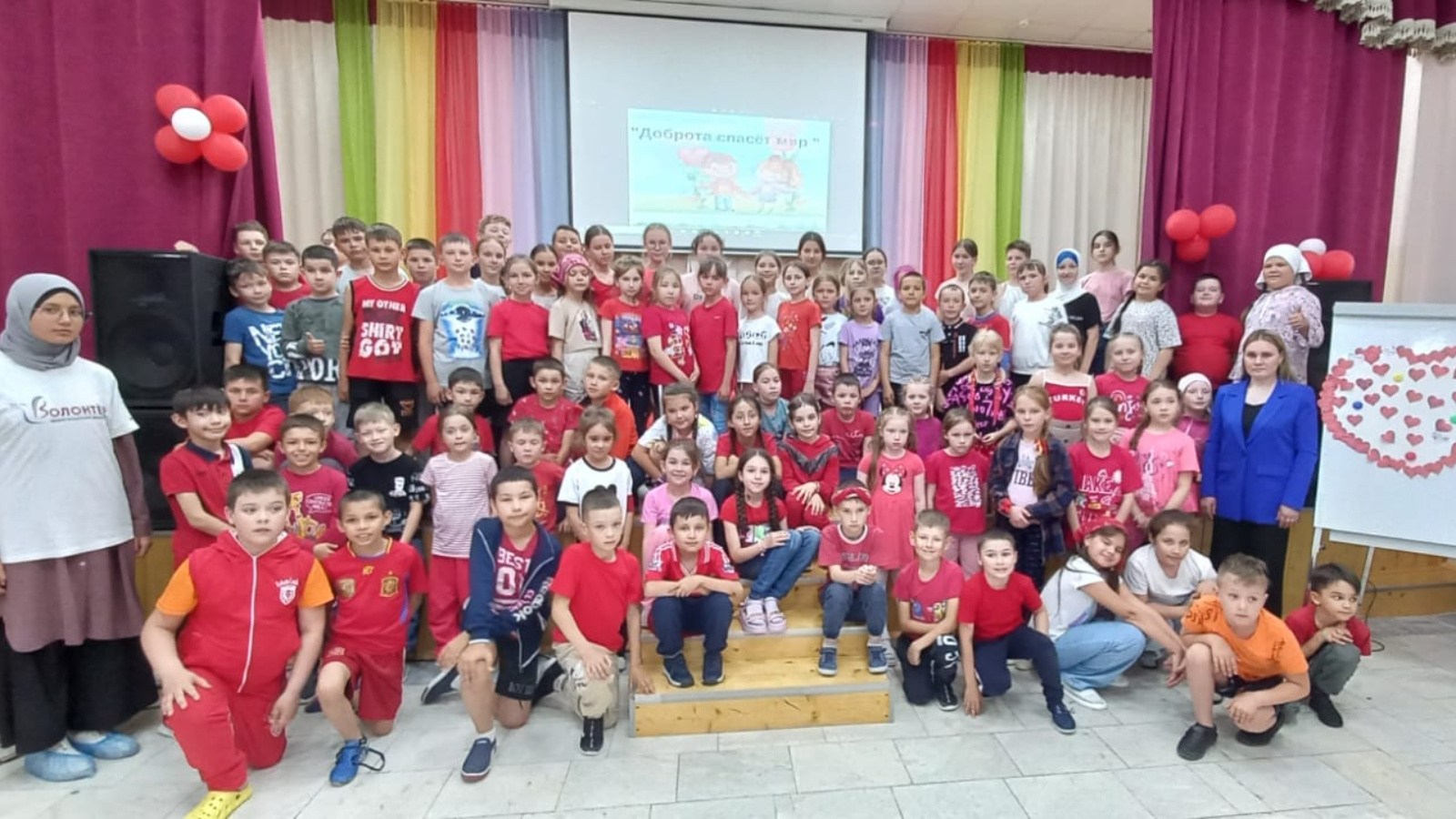 Дәрес барышында балалар отрядлар буенча Игелек һәм мәрхәмәт турында проект эшләрен әзерләделәр һәм якладылар, йөрәк рәвешендә плакат ясадылар.
