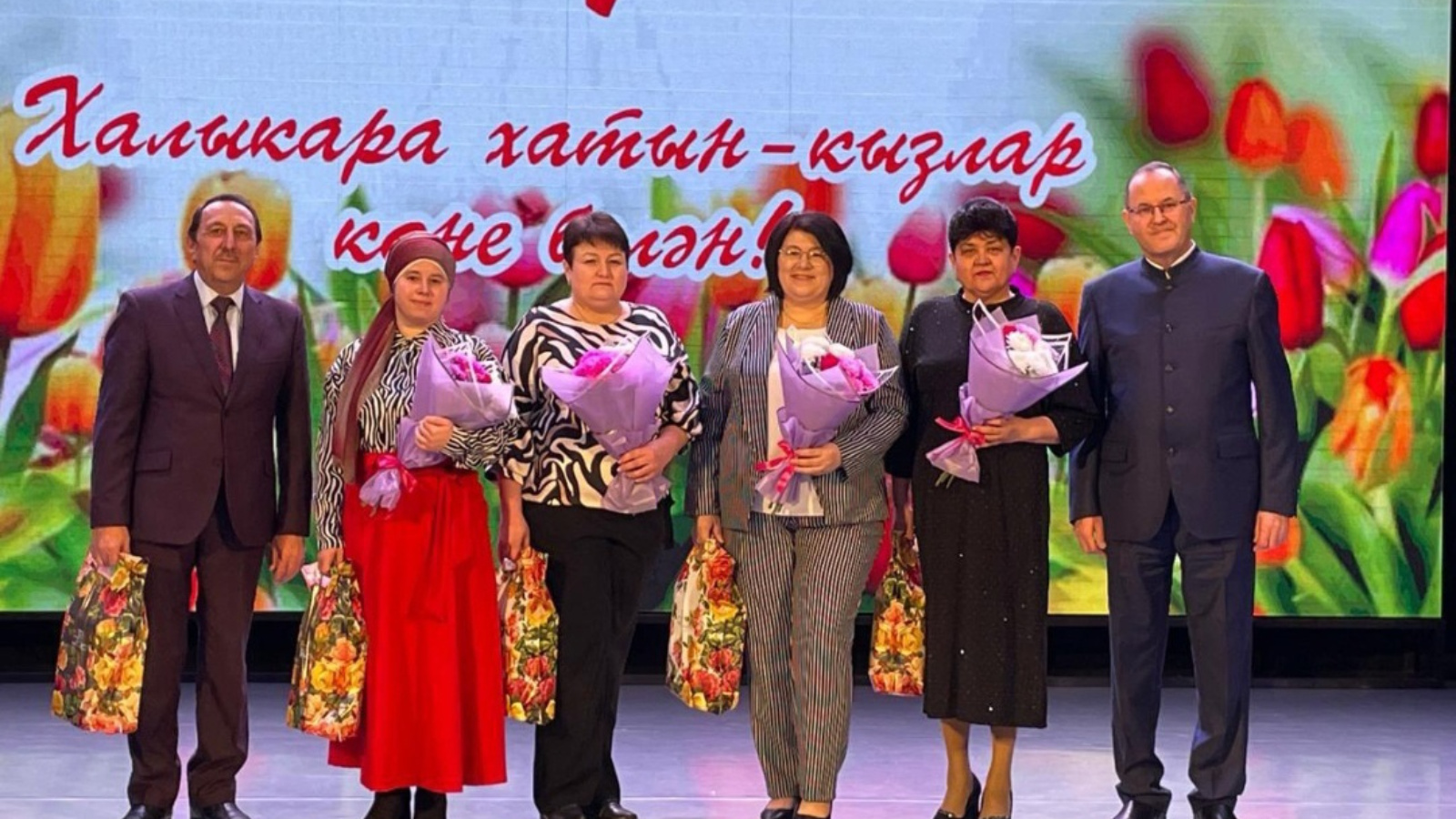 Ватаныбыз азатлыгы сагында торучы батыр уллар үстергәннәре, аларга лаеклы тәрбия биргәннәре һәм Ватанпәрвәрлек хисләре утканнары өчен һәм быел 65 яшьлек юбилеен бәйрәм итүче бертөркем әниләрне, «Ел хатын-кызы. Ел ир-аты: хатын-кыз карашы» дигән республика конкурсында катнашучыларны һәм махсус хәрби операция барышында волонтерлык хәрәкәтенә зур өлеш керткән 75 яшьтән өлкән апаларыбызны да хөрмәтләп Район башлыгы рәхмәт хатлары, бүләкләр тапшырды.